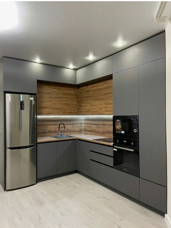 Очень долго ждали ремонт в новостройке, хотелось по скорее заехать. Для нас важно было чтобы кухня была сделана и установлена в срок. Всё полностью под ключ с установкой заняли 21 день, нас полностью устроило. Спасибо большое! В подарок ещё дали мойку и скидку на плиту.